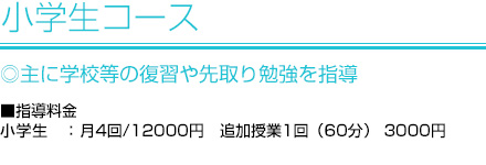 小学生の勉強とは今後の中学、高校そして大学での授業のための土台となります。その小学校での勉強をおろそかにしてしまうことが今後全てのつまずきの原因となってしまうのです。 「あれ?最近学校の授業がよくわからなくなってきたかも・・・」と思うようになったら危険信号です!そのまま放置してはいけません。我々と共にわからない、不安な分野をカバーしていきましょう!そして中学校に入学する前に日々勉強する習慣を身につけましょう。もちろん「中学の勉強を先取りしたい」というご要望も大歓迎です。